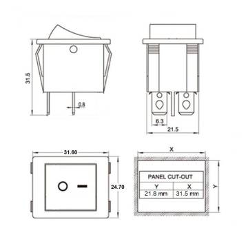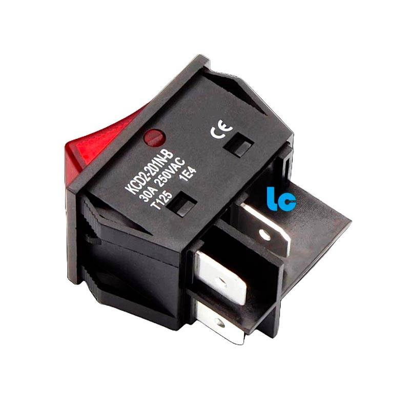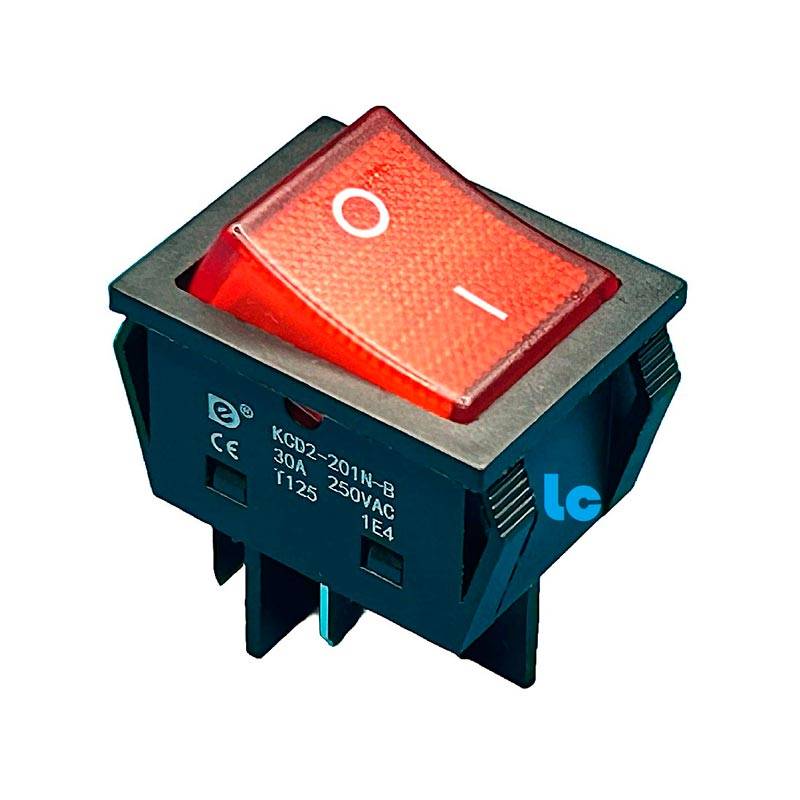 Interruptor Basculante Bipolar - Luminoso - 30A / 250V - Tecla Roja