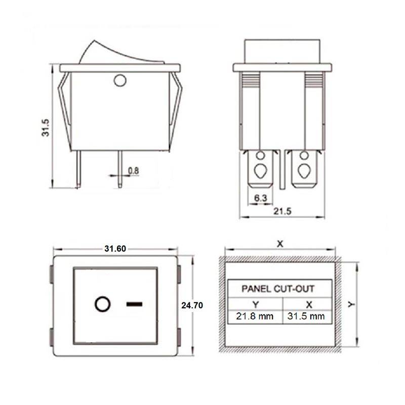 Taladro de montaje aprox. : 31,5 x 21,8 mm