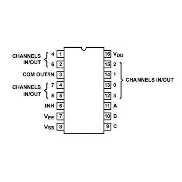 Circuito Integrado CD4051BE - DIP 16 - Multiplexor 8 Canales