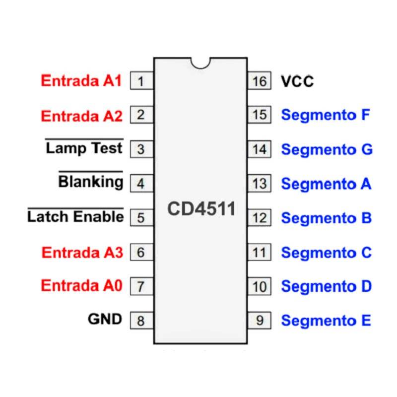 Circuito Integrado CD4511BE - Decodificador BCD Para 7 Segmentos, Driver, Registrador, Controlador