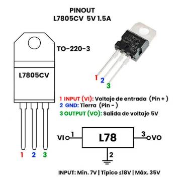 Voltaje de entrada mínimo: 7V - Voltaje de entrada máximo: 35V