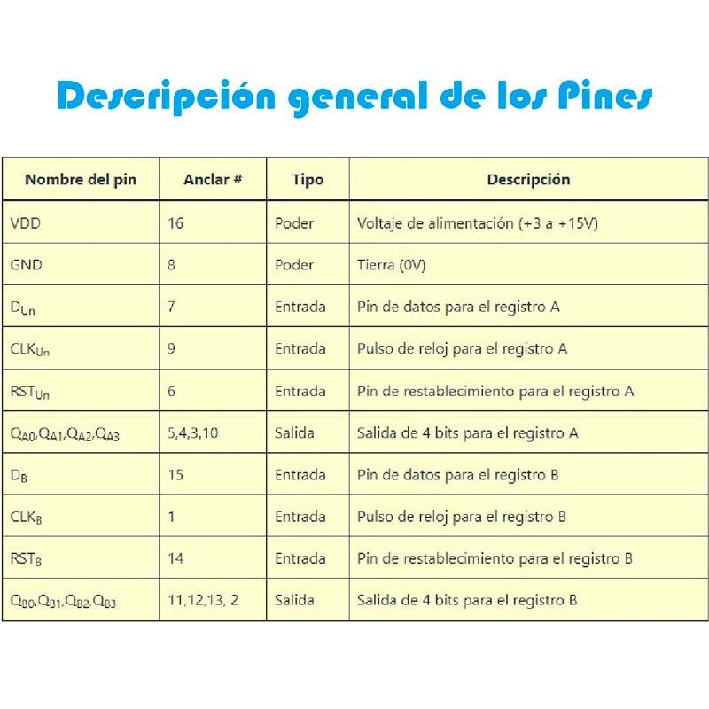 Cada registro de cambio tiene pines de entrada en serie y salida en paralelo.