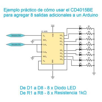 Se usa comúnmente para darle más pines de salida de un microcontrolador, como Arduino.
