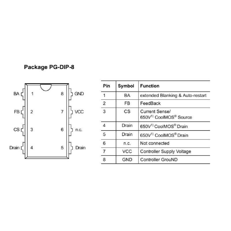 El ICE3BR1765J es un circuito integrado controlador de fuente conmutada.