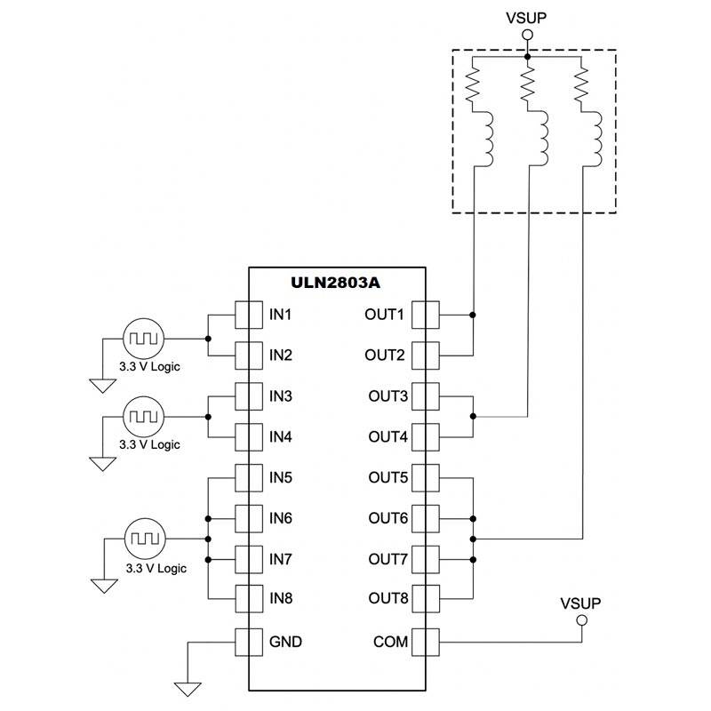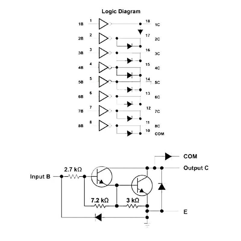 Cuenta con 8 transistores Darlington NPN con diodos de protección integrados, permitiendo el control seguro de relés, motores paso a paso, válvulas, solenoides y otros dispositivos inductivos.