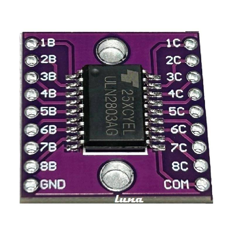 El módulo controlador ULN2803A Darlington es una solución fiable y eficiente para controlar dispositivos de mayor potencia desde microcontroladores de baja tensión.