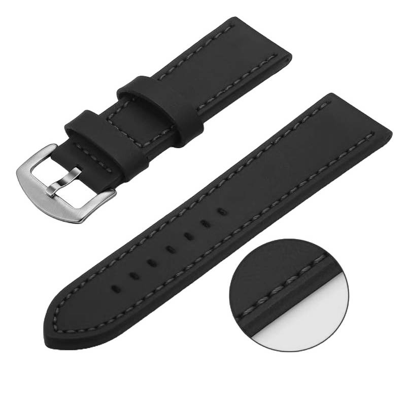 Correa De Cuero Compuesto Para Reloj De Pulsera - Ancho 20mm - Color Negro