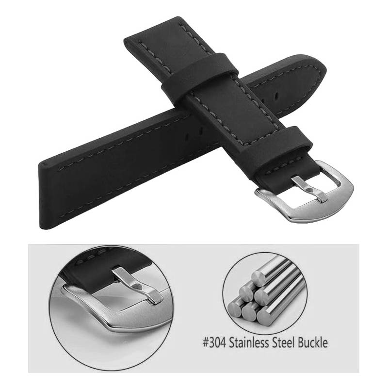 Correa De Cuero Compuesto Para Reloj De Pulsera - Hebilla De Acero - Ancho 20 mm - Incluye 2 Pasadores De 20 mm