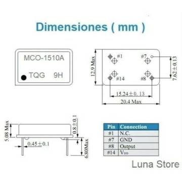 Oscilador De Cuarzo 1.5360 MHz - TTL DIP 4 Pines - Cristal Activo - 3.3V / 5.0V