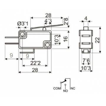 Micro Interruptor - Sensor Final De Carrera - NO NC - 15A - 250V - Micro Switch - M028