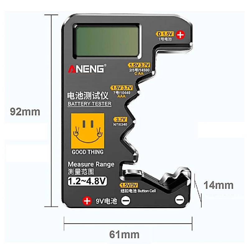 Ideal para comprobar el estado de pilas usadas en mandos a distancia, juguetes, linternas, básculas, radios, relojes y muchos otros dispositivos. Una herramienta imprescindible para el día a día.