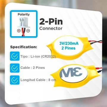 o Diámetro : 20 mm - Tipo : CR2032 - 2 Pin